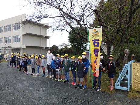 1年生は,なぎの木学習で,神郷公園へ秋見つけの探検に行きました。北風吹く,肌寒い日でしたが,元気いっぱいに出発!!三本松公園にはあまりなかったどんぐりや松ぼっくりに,子ども達は,目を輝かせていました。「次は,石巻山に行こうよ」とやる気満々の1年生でした。