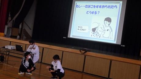 6年生が,タバコについての出前講座に参加しました。薬剤師の近藤先生に、タバコを吸うことでの悪影響について教えていただきました。「初めの1本を吸うか吸わないかが大事。吸うきっかけの多くは、仲のいい友達や先輩から勧められること」だそうです。みんな真剣に話を聞くことができました。