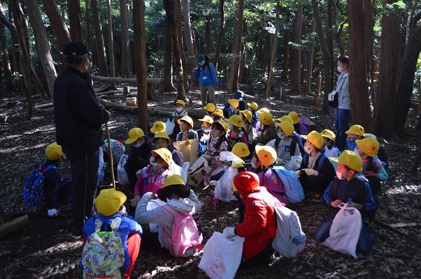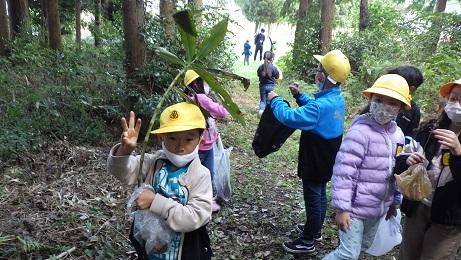 1年生は,なぎの木学習で,石巻山へ秋のお宝見つけの探検に行きました。朝の第一声から,「今日も,お宝たくさん見つけよう。」と,どの子も意気込んでいました。石巻山の学校林では,山の博士が登場し大盛りあがり!自分の顔くらい大きなまつぼっくりやまるくてかわいい椎の実を夢中で拾い,「すごいお宝だ。あっぱれだ。」とこれまた大喜び!たくさんのお宝たちで,どんな素敵で楽しい遊びができるでしょうか。今から楽しみです。