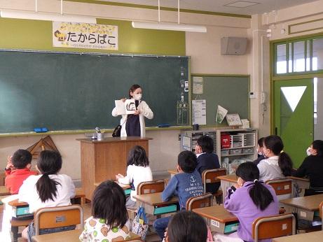 1年、4年、6年生で、久しぶりに「ぐるんぱ」さんの読み聞かせが行われました。どの学年も、「ぐるんぱ」さんの語るお話の世界に引き込まれていました。コロナ禍で、学習にもさまざまな制限がかかるこの頃でしたが、“心が豊かになる朝のひと時”となりました。