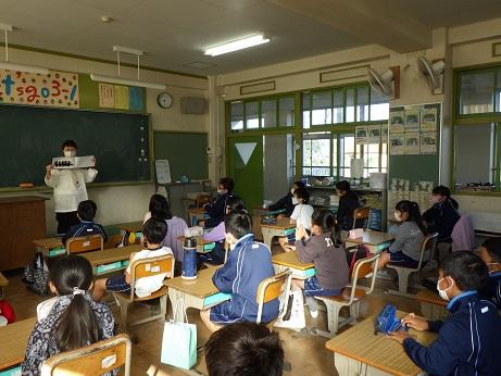 3年生はなぎの木学習で,校区の西側に工場を見つけました。そこで,アイセロで働かれている方に来ていただき,お話をしていただきました。実際に製造しているものを見せていただきながら,アイセロは何をしているところなのかを知ることができました。