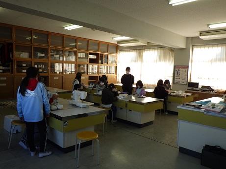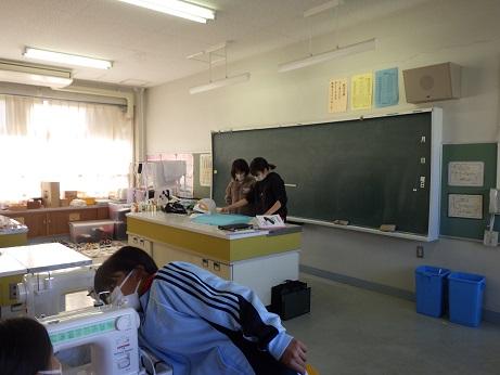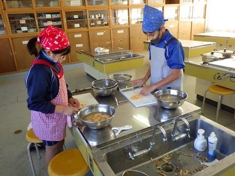 5年生はミシンを使ってエプロンづくりをしています。初めて使うミシンに戸惑いながらも慎重に作製しています。縫う位置が曲がらないように一生懸命に取り組んでいます。
