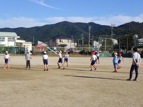 2時間で計12試合行いました。どうすれば3人全員がボールを打ち、つなげて返すことが出来るのか,試行錯誤して練習してきた成果が出ましたね。