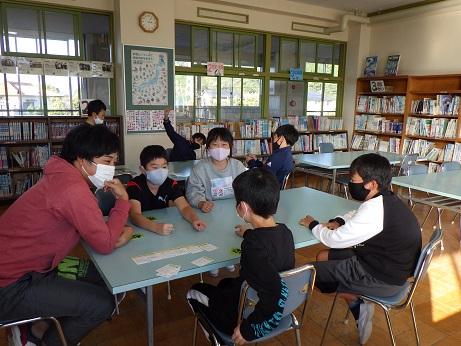 3年生は,防災いろはカルタをしました。「あぶないと おもったらすぐ つくえのした」や「すぐ避難 津波の速さ 待ったなし」といった読み札があり,楽しく避難に役立つ事柄を学ぶことができました。