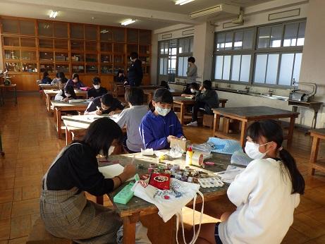 太鼓と笛の音に引き寄せられ、音楽室に向かうと、太鼓クラブが太鼓の練習をしていました。手芸、生け花、アウトドアスポーツ、インドアスポーツ、コンピュータ、室内ゲーム、工作・イラスト、8つのクラブが、それぞれ楽しく活動していました。太鼓と生け花は、講師の先生をお招きし、教えていただいています。