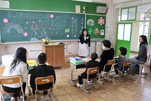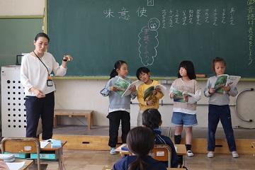 石巻の神郷に住む山本隼彦さんをゲストティーチャーとしてお呼びし、石巻神社の鬼まつりについての質問に答えていただいた。石巻神社の歴史や鬼まつりについて知らなかったことを、とてもわかりやすく楽しく教えてくださり、実りある授業となりました。