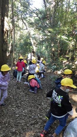 1年生は,なぎの木学習で,石巻山へ秋のお宝見つけの探検に行きました。朝の第一声から,「今日も,お宝たくさん見つけよう。」と,どの子も意気込んでいました。石巻山の学校林では,山の博士が登場し大盛りあがり!自分の顔くらい大きなまつぼっくりやまるくてかわいい椎の実を夢中で拾い,「すごいお宝だ。あっぱれだ。」とこれまた大喜び!たくさんのお宝たちで,どんな素敵で楽しい遊びができるでしょうか。今から楽しみです。