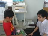 なかよし学級が生活単元の時間に育てている野菜を職員室の先生に販売しました。子どもたちにとって「野菜の値段を伝えて,代金を預かりお釣りを渡してお礼を言う。」といった販売の実体験はとても貴重な学びの場です。今日の野菜はバジルでした。明日は,ミニトマトが届く予定です。