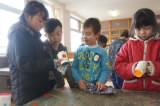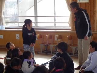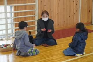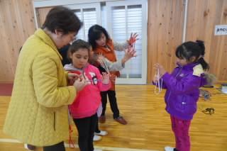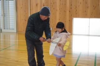 「昔遊び名人さん」として,野口さんをはじめ12名の地域の先輩方をお迎えし,遊びのこつを教えていただきました。けん玉,ヨーヨー,お手玉,おはじきなど,8つのコーナーで遊びました。最後に登場した紙飛行機が飛ぶと「わあーっ!」とみんなで大喜び。手作りの竹馬もプレゼントしていただき,とても楽しいひとときでした。