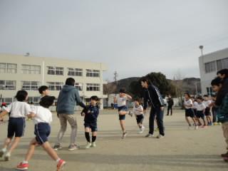 朝の時間帯に,運動場で全校児童が集って「長なわ集会」を行いました。