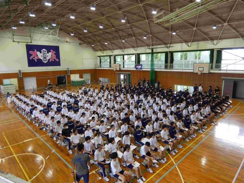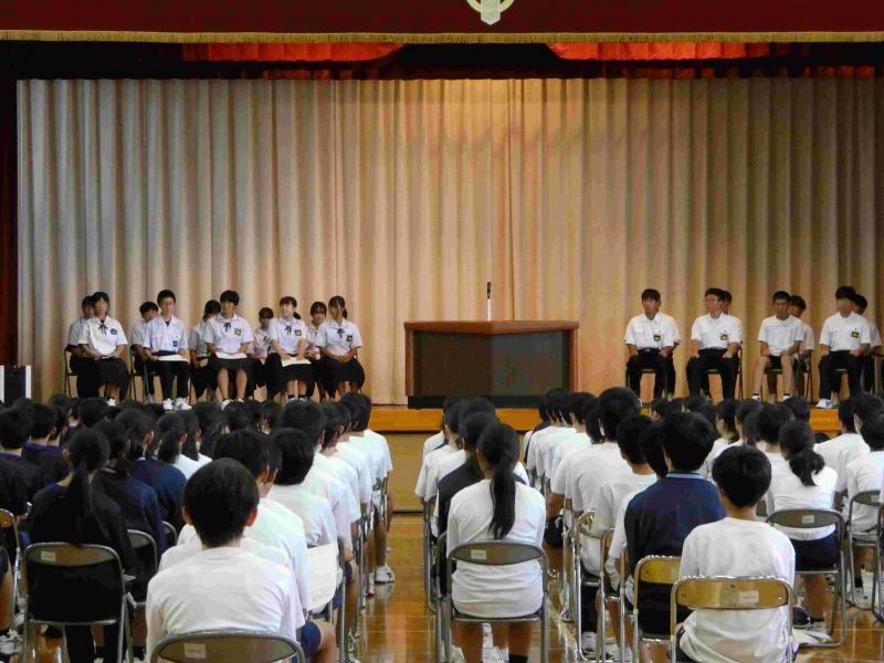 終業式では、各学年の代表生徒4名が一学期を振り返り、具体的な目標を立ててがんばったことやその成果や反省をふまえて、夏休みや2学期に向けたさらなる目標を立派に話してくれました。