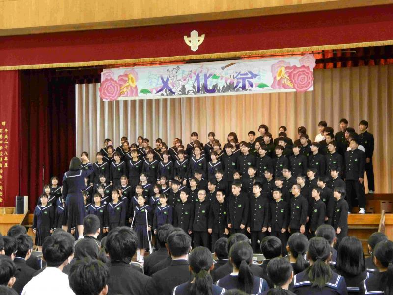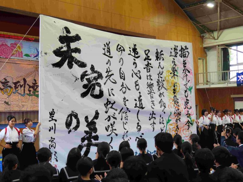 今年の文化祭は、大きく進化して、午前中は、合唱コンクール、午後は豊川高校のダンス部や書道部のみなさんの実演パフォーマンスを見せていただいたり、各学年の学習発表会を行ったり…と見どころ聴きどころを1日にギュッと詰め込んだ形にしました。