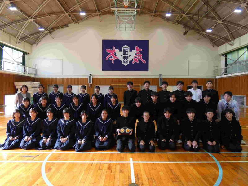 地元の中学生の合格祈願として、あたたかいエールと美しく美味しそうな柿をいただきました。その思いに応えるべく、3年生全員で自らの進む道を切り拓けるようがんばります。