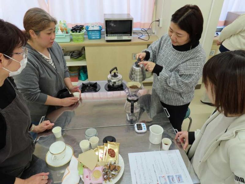 11月6日(木)に、PTA主催で「コーヒーの淹れ方&デザインカプチーノ体験」を行いました。当日は、ワルツさんに協力をいただき、美味しいコーヒーの淹れ方を教えていただきました。また、後半には、デザインカプチーノを体験しました。参加した皆さんは、時間を計ったり、お湯の注ぎ方に注意したり、美味しいコーヒーの淹れ方をマスターしていました。デザインカプチーノも大好評でした。