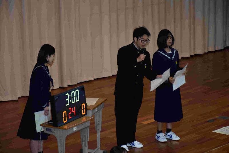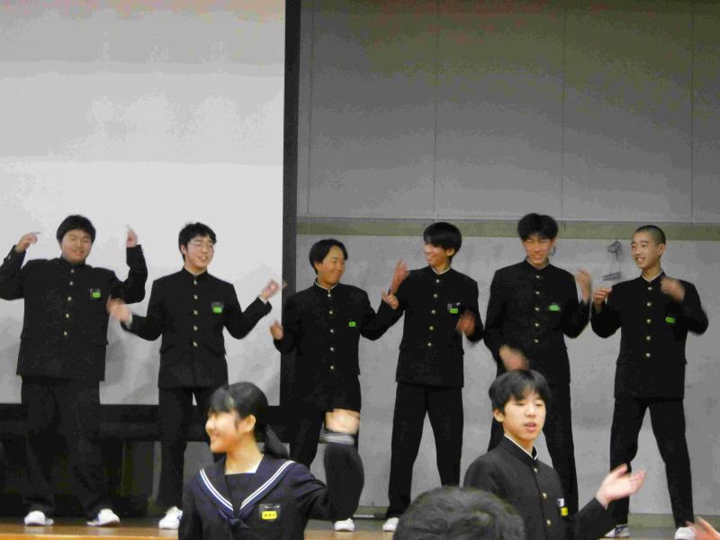 「勝山48」の歌とダンスでアンコールが出るほどのスタートダッシュをし、1年生企画では懐かしい出来事を楽しく振り返り、大爆笑でした。幕間のお世話になった先生方のビデオメッセージも、3年生からうれしい歓声が上がりました。2年生企画では、部活動の後輩が感謝の気持ちを各部で伝え、すべての3年生に感謝の気持ちと、自分たちがバトンをしっかり引き継ぐという強い決意を伝えました。
