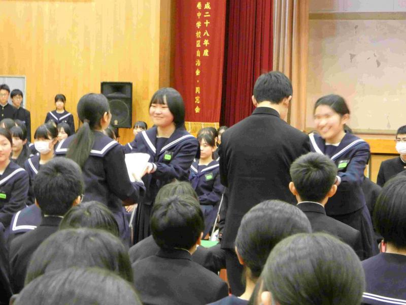 3年生を送る会がありました。1,2年生の後輩たちが、3年生の先輩に感謝の気持ちを伝えようと、時間をかけ、準備して本気で取り組みました。