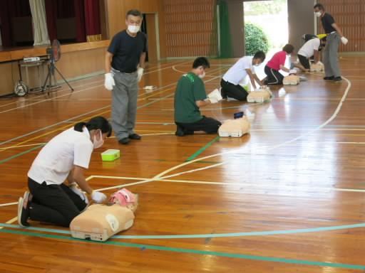 7月8日(木)3限・4限に、2年生生徒を対象に救命救急法の実習を行いました。