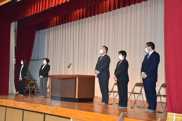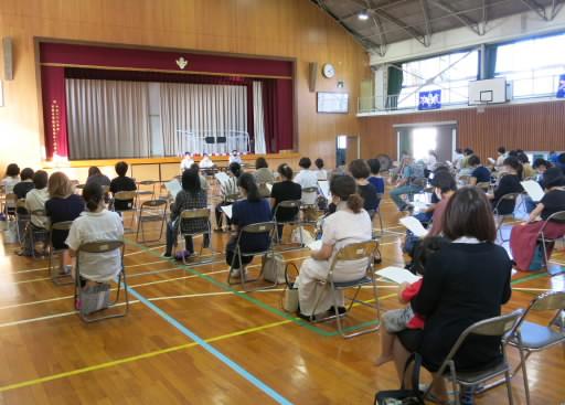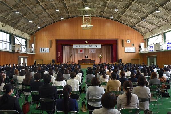 コロナウイルス感染拡大防止の観点から、体育館内の三密をふせぐために、職員、新入生とその保護者のみの参加で、常時換気をしながら行いました。