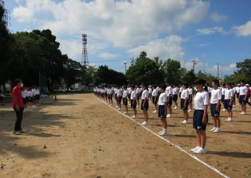 今週木曜日の体育祭に向けて、今日の1時間目に全校練習を実施しました。開会式の隊形、準備体操、長縄JUMPの練習を行いました。先週、体育祭タイムで実施した成果があったクラス、これからの課題が見つかったクラス様々です。