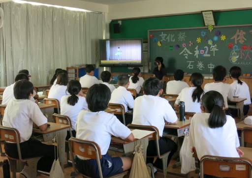 教室で参加した2、3年生は、新しい学年、新しいクラス、新しい担任の先生(引き続いた生徒もいますが・・・)に恥ずかしさと、ワクワクを抑えきれない様子の生徒をたくさん見ることができました。素直に楽しさを表現できる石中生の良さを感じる瞬間でした。