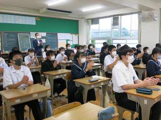 話を聞く姿、校歌を歌う姿、その姿一つ一つに石中生の良さが光っていました。退任された先生方からは、「石巻中の中にいると気づけない石巻中の良さを改めて感じた2週間でした」、というお話をいただきました。