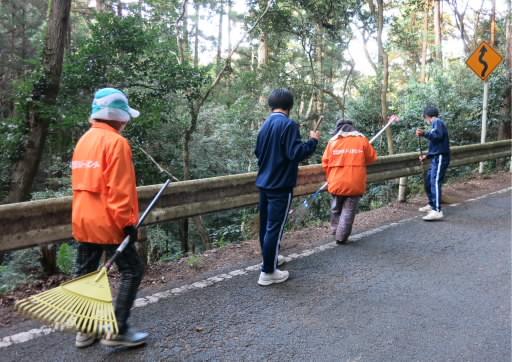 石巻登山マラソンに向けて、校区のシルバーさんの協力のもとマラソンのコースとなる登山道の清掃を1年生が行いました。落ち葉がたくさん落ちていましたが、とてもきれいになりました。