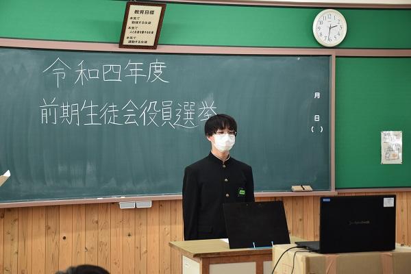 3月17日に生徒会役員選挙が行われました。立ち合い演説も体育館に集まれないため、事前に収録した演説を教室で見るという形で行われました。