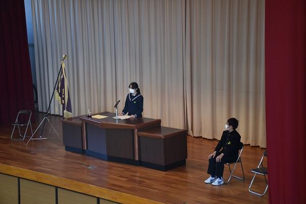 3月24日に修了式が行われました。体育館には、生徒会役員や表彰を受ける人など一部の人が入り、他の人は各教室で映像を見ながら参加しました。体育館からの映像で体育館にいる人と同じ気持ちで参加できたかもしれません。