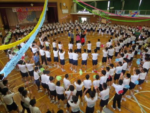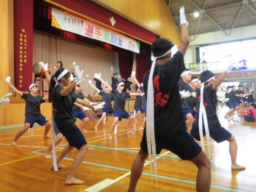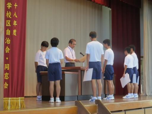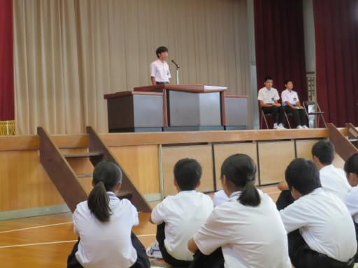 9月3日に夏休みが終わって最初の全校集会が行われました。全国大会へ行っていて前回表彰することのできなかった陸上部などの表彰を行いました。