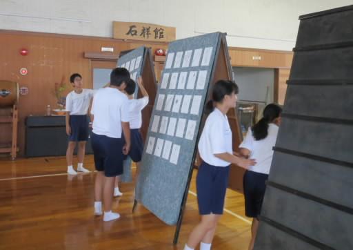 明日の文化祭に備えて、準備を行いました。作品展ではスケッチなどのほか、保護者の方などの生け花や写真などの展示もあります。いい文化祭になることを願っています。