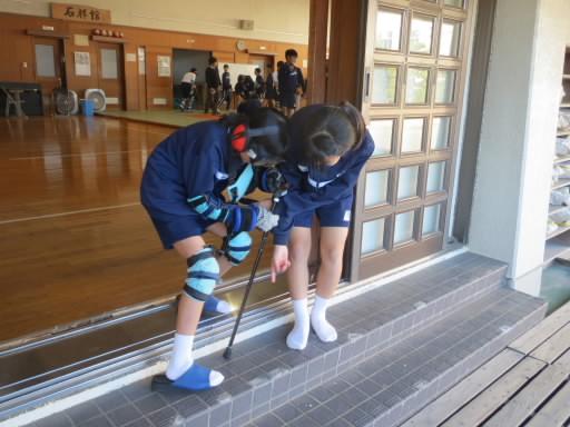 1年生が福祉教室を行いました、車いすやお年寄りの体験をすることを通して、どのように接したらいいのかを考えました。