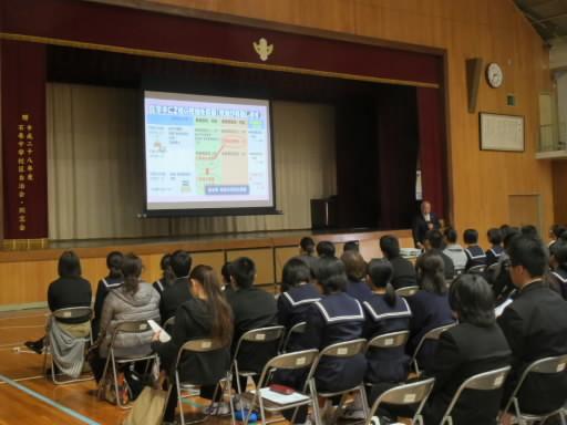 一部の私立高校の合格発表が行われた2月8日に、2年生を対象とした進路説明会が行われました。2年生の皆さんは自分の進路決定まであと約1年。卒業後のことを考えた学習、生活を今まで以上に心がけていってください。