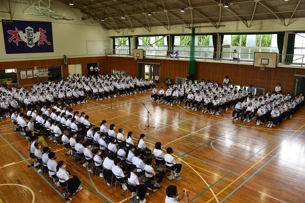 今週末からはじまる、大会やコンクールに向けて、選手激励会を体育館でおこないました。2年生有志による応援団、1,2年生からの先輩へのメッセージ、そして、各部活動ごとの決意表明。全校生徒があつまるたびに感じることですが、発表を聞く生徒の姿がとても立派で感心します。