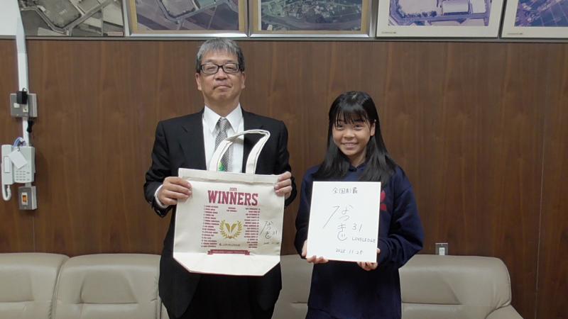 大宮那月さんがトップチームに登録されている朝日インテックラブリッジ名古屋が「なでしこリーグ1部」で優勝した報告も兼ねて、11月25日の夕方に磯辺小学校を訪問してくれました。大宮さんは、ラブリッジのU15とU18の両チームでも活躍し、それぞれの世代の全国大会にこれから出場します。U15大会は12月6日から、U18大会は1月3日から、それぞれ大阪で大会が開催されます。日本代表めざして、奮闘を続ける大宮那月選手をこれからも磯辺小のみんなで応援していきましょう!