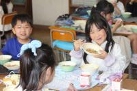 メニューは子どもに人気の「マーボー豆腐」。感想を聞くと、何人もの子が「おいしい」と答え、完食する子もたくさんいました。