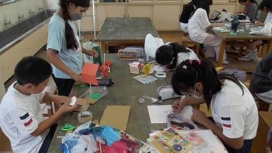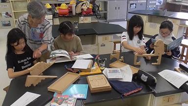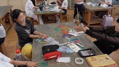 この日の「いそべ学習」では、「リトアニア共和国」を知ってもらうためにそれぞれがテーマをもって学習を進めていました。こちらのグループは、「ソダス」のワークショップを行なうことを目ざして、そのモデルとなる「ソダス」づくりに励んでいます。