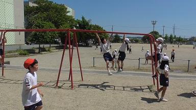 3日間の個人懇談会が終了し、今日から再び平常時間割に戻りました。1,2時間目の5,6年の水泳指導から学校に戻ってきてしばらくすると3時間目の3年生の体育が運動場でスタートしました。