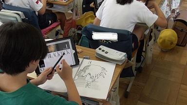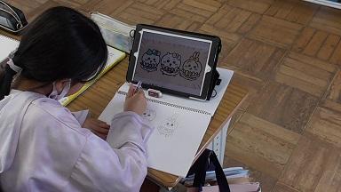 6年生の「いそべっ子発表会」の学年練習を見終えて、5年生の教室を通りかかると、こちらでもタブレット端末を使って学習活動が行われていました。一般の大人の方のイメージがどのようなものか十分把握できていませんが、タブレット端末が全児童に配付されて以来、どの授業でも活用され、それが当たり前の風景となっています。タブレット端末はこれからの学習では、鉛筆と同様に、当たり前に備えている教具の一つとなります。健康面、安全面を配慮しながら、常に手元にあるものとして、各家庭でも受け止めていただく必要があると考えています。