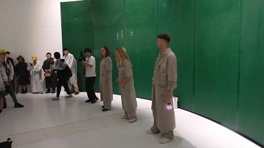 3組は教科書を見ながら群読の練習をしていました。廊下ではダンシングチームが、タブレットを見ながら練習していました。