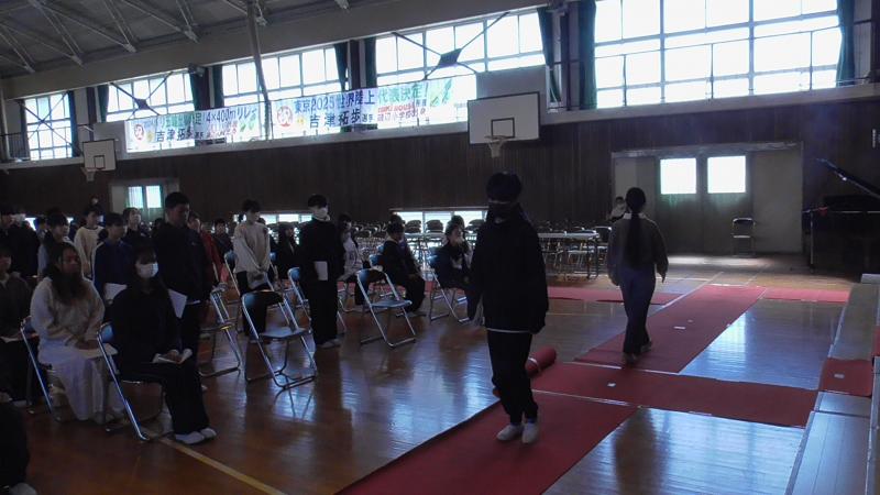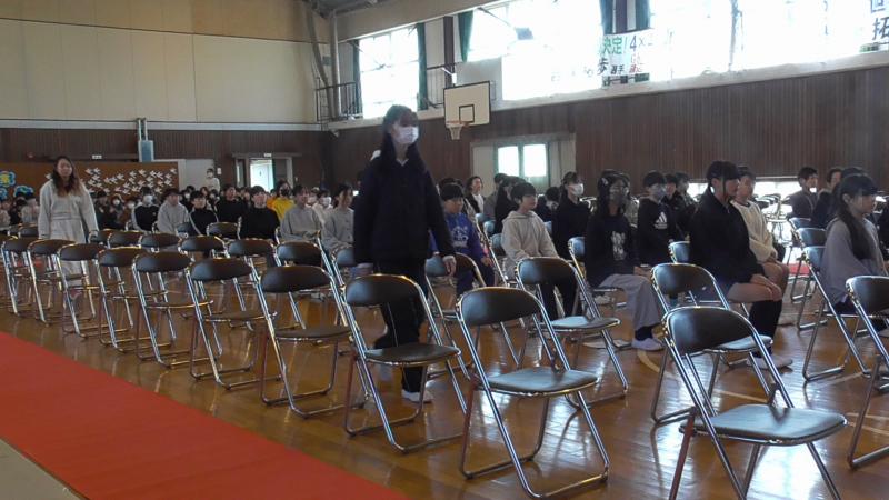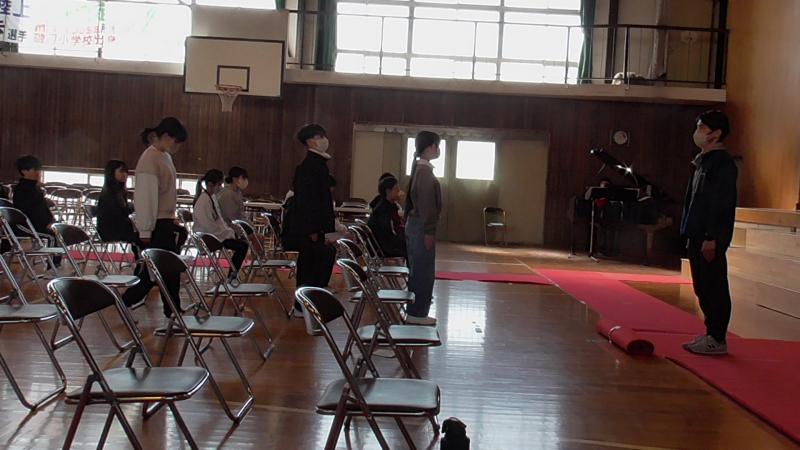 卒業式本番のちょうど一週間前にあたる3月12日(木)に、sツ業式の予行練習を行いました。卒業式に来校される保護者のみなさま、来賓のみなさまの枯れましては、写真や動画参考に、卒業生の座席、ステージ前の立ち位置、入退場の動きなどをご確認いただければ幸いです。