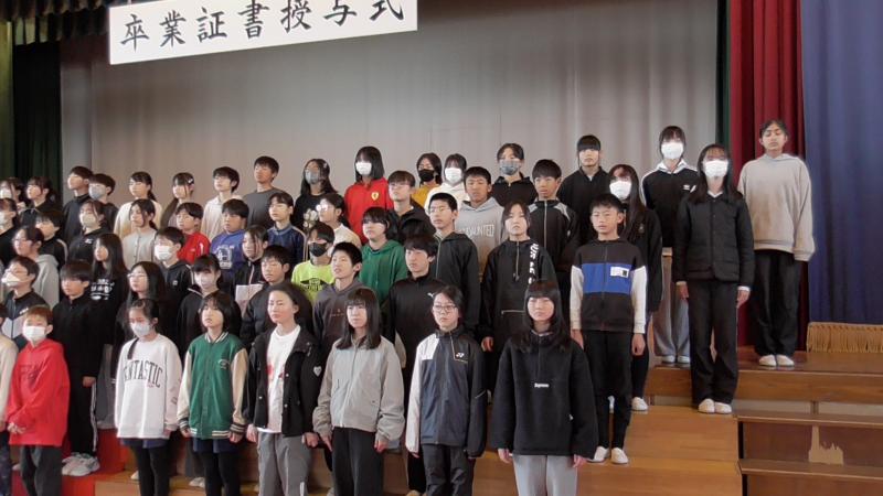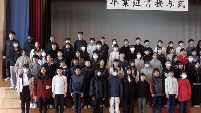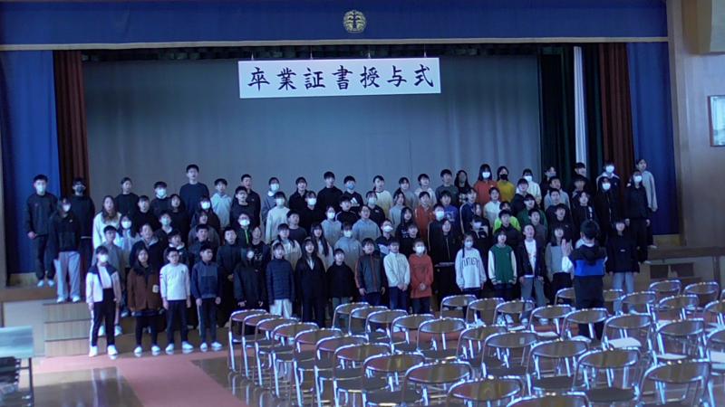 南陽中の誇りは響きある歌声です。1,2年生の歌うお別れの歌、3年生が歌う卒業の歌「正解」、そして南陽中生が大好きな合唱曲「南陽中校歌」を特等席で味わうことができました。磯辺小の多くの子どもたちが進学する南陽中で、歌を通して子どもたちがより一層輝く姿を見ることができる日が来ることを楽しみにしています。