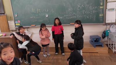 長放課には、2年生が「むくろじ活動」で、「九九バトル」を企画してくれました。「校長先生も参加して!」と誘われましたが、スラスラかまずに九九の表を暗唱する2年生の子どもたちにはきっと叶わないと思い、「負けず嫌い」で「かみかみ星人」を自認しているので、勝負を避けてしまいました。子どもたちの対応力にはかないません。さすがです2年生。