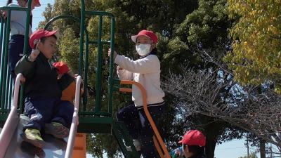 磯辺っ子と言えば、やっぱり鬼ごっこが人気です。クラスみんなで外に出て、楽しいおに後kkkpとのはじまりのようです。
