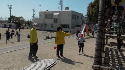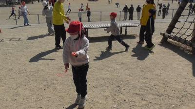 すげえ、三山ひろしいけるじゃん! 1年磯辺校区老連会との「昔遊び」交流(3月4日)
