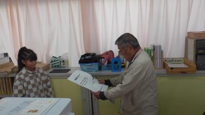 4年生が「お米作り体験」でお世話になった村田さんへ、1年の学習をまとめた「米づくり新聞」をお渡ししました。バケツ稲のアドバイスをいただいたり、稲刈り体験をさせていただいたりするなど、一年を通して大変お世話になりました。一人一人が作成した「米づくり新聞」を通して、子どもたちの感謝の気持ちが伝わればと願うばかりです。今年の天日干しのお米を味わうことができて、最高でした。