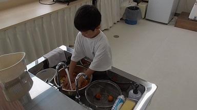 現在の男女共同参画時代では、調理経験、技量についても男女の差はないものと考えていますが、不器用を理由に家庭で包丁を持つことが禁じられてしまう私にとっては、ピーラーを使うことなくジャガイモの皮を見事にむく子には憧れを抱いてしまいます。どの子も上手に食材を調理する姿からも家庭でも練習していただいたおかげもあると感じられました。