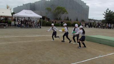競技種目 低学年・玉入れ 1の3,2の2 中学年・台風の目 3の1、4の1 高学年・ 障害物リレー 5の3、6の1 代表授与 6年児童