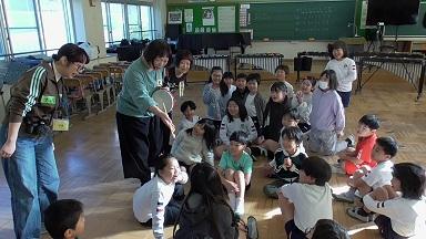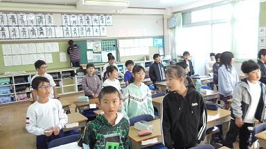 5時間目がスタートするとすぐに、外からっ子どもたちの元気な声が漏れ聞こえてきました。「どこへ行くの?」と声をかけると。「運動場で太陽の観察をする」とのlことでした。ここに集まる楽しそうな笑顔が、体験活動の楽しさ、期待感をかんじることができます。