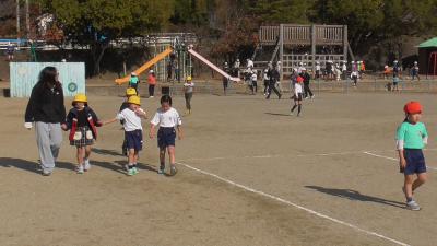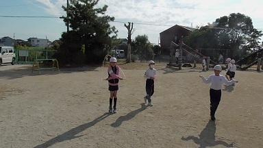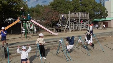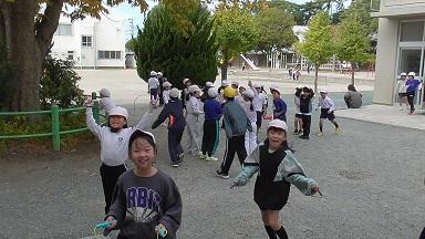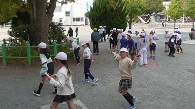 運動場では、おにごっこの他にも、ドッジボールや鉄棒、遊具で遊ぶ子を多く見かけます。少し肌寒さを感じるようになった今日は、縄跳びを手にした子も見かけました。ゲストが授業を見に来る特別な日も、子どもたちにとっては「日日是好日」と感じているようです。