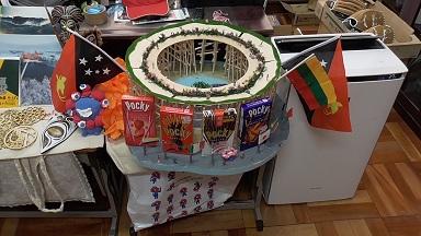 ミニチュア教室の先生の作品も多く飾られていました。「さすが」の作品ばかりです。作品の中には、作者の先生が訪れたドイツのメルヘン街道の景色がモチーフになっているものもありました。メルヘン道は「グリム童話」ゆかりの土地を結んでいるそうです。写真の人物は、夏休み前に1週間ほど磯辺小に海外から体験入学に来てくれた子のお父さんの少年時代だそうです。